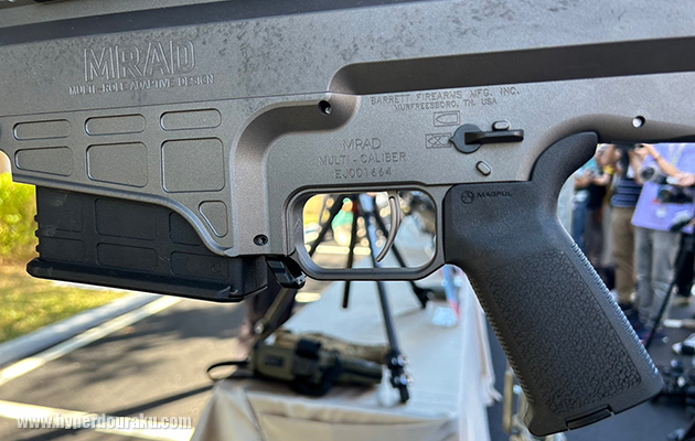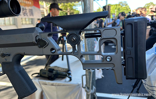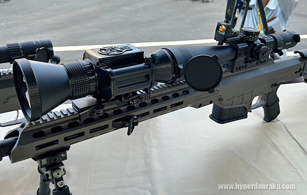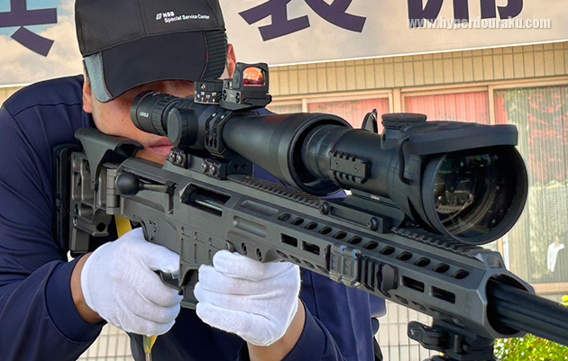 米国BARRETT社製、MRAD狙撃銃。口径7.62mm、全長1237mm、重量6.94kg、有効射程1500m。