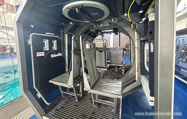 これがプールに沈められる、中の搭乗員たちは機外へ脱出する。夜間を想定した訓練もある。