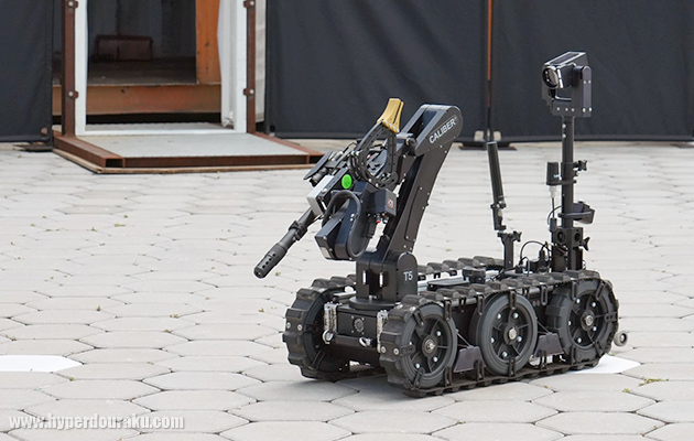 無人ヘリが上空から偵察。最大速度85km/h、最高高度3000m、最大滞空時間1時間、最大通信距離30km。
