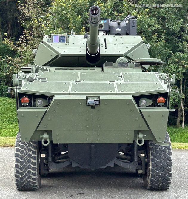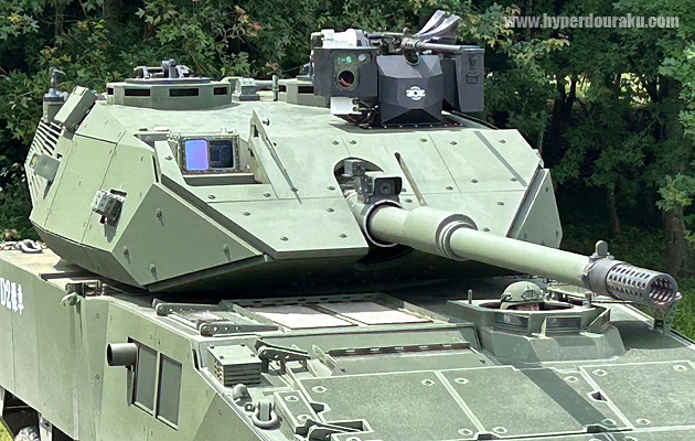 砲塔上に遠隔制御できる12.7mm機関銃、砲身横に7.62mm同軸機関銃を備える。また、アメリカのM1A2戦車と同レベルの「ハンターキラー機能」を備えているとのこと。105mm砲 33発、12.7mm弾 400発、7.62mm弾 2000発を搭載できる。