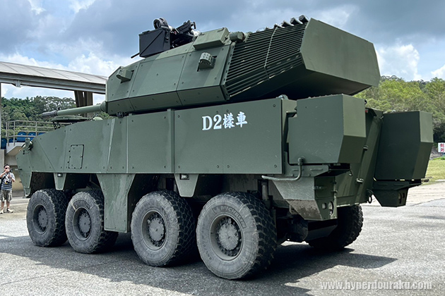 2024年6月25日、台湾国防部軍備局生産製造中心でメディア公開された105mm砲を搭載する装輪戦闘車の試作型「D2」を紹介。