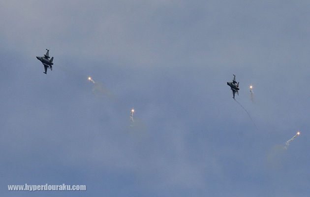 F-16Vがフレアを展開。