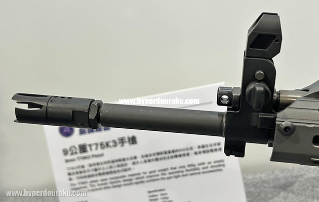 チャージングハンドルもAR同様だが、アンビ化されている。リアサイトはレシーバー固定式のフリップアップタイプ。