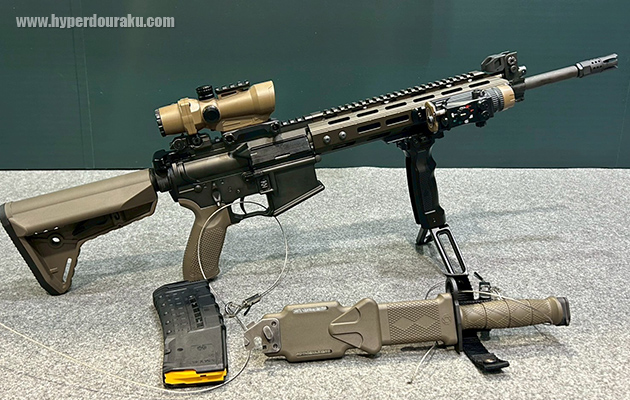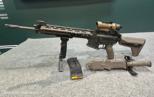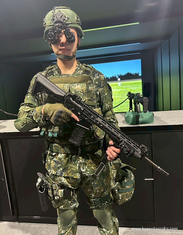 軍備局は 5.56mm T112戦闘小銃 と 12.7mm T112狙撃銃 も展示。T112戦闘小銃は量産型で、2年前の試作品と基本構造は同じだが、射撃セレクター、ボルトキャッチ、ハンドガードが改良されている。今回の展示仕様では、グリップ、レーザーサイト、4倍スコープ、内蔵ドットサイト、透明軽量マガジンなどが標準装備される。