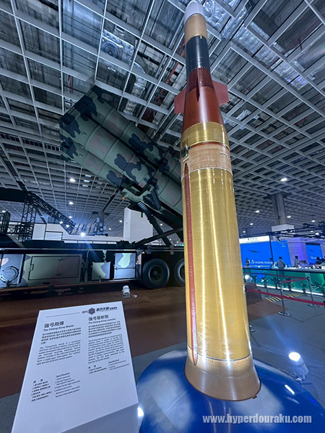 初公開となったのは、地上発射型中層・対戦術弾道ミサイルシステム「強弓」で、会場で最も注目を集めた新装備である。強弓ミサイルが来年度予算に含まれるかとの質問に対し、中科院の李世強院長(中将)は「展示しているということは、すでに量産段階に入っている」と明言した。