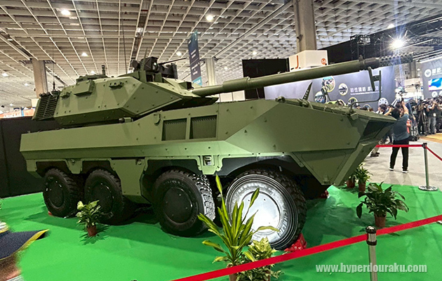 獵豹105mm装輪戦車は軍備局と中科院が共同開発。105mm低反動戦車砲を搭載し、D1・D2試作車は昨年6月に初公開。当時は合格評価を得たものの、陸軍は全高3.3mを3m以下に抑えるよう要請し、砲塔内部の改修を実施。その結果、第3試作車D3が製造され、今年8月の軍聞社番組で初めて映像公開され、今回の展示で一般公開となった。