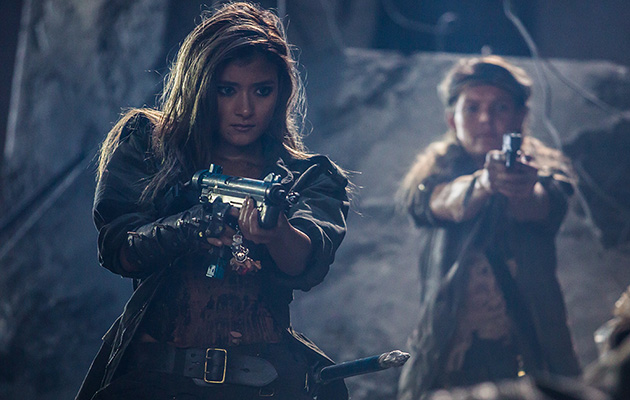 重武装のアンブレラ社戦闘員や数万単位のアンデッドを相手にシリーズ最大スケールの苛烈な戦闘を繰り広げるアリス。手にしたソウド・オフ・ショットガンはナント「水平三連」だ。これはゲームに登場した架空の銃"ハイドラ"を再現したもの。