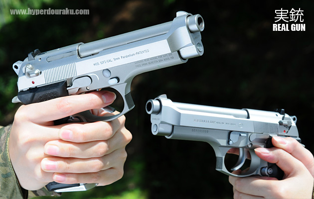 直径11.3mmの大口径弾丸を比較的遅いスピード(270〜300m/秒)で飛ばし、対人用のストッピングパワーに優れる.45口径弾。これを撃ち出す拳銃を2挺並べ、「一度に2発づつ発射することで2倍のパンチ力を得よう!」という開発コンセプトは、もともと 1911年から1985年までの間、アメリカ軍の制式拳銃だった名銃「コルトガバメントM1911A1」の100年後の究極進化型!という触れ込みで考案された「半ば冗談」だったらしい。しかし実際にカタチになったこの銃は大変な話題になり、発売元であるイタリアの銃器メイカー、「アーセナル・ファイアアームズ社」の当初予想を上回る反響を得ているという。