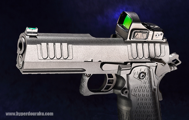 そもそもマイクロダットサイトはハンドガンのスライドに省スペースなデザインで直載せすることを目的に開発された。マウント加工が施されたスライドを備えた「キャリー・オプティクス・バージョン」はいまや、幾多の実銃メイカーでその製品ラインナップに加えられている。その際に心配や不安のタネになるのが実銃の反動、とりわけ高速でガツン!ガツン!と前後作動するスライドの衝撃にダットサイトが耐えられるのか?という問題だ。ここをクリアしてこそ「信頼できるマイクロダットサイト」だと言えるのだ。