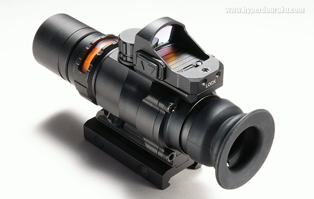 付属の「マウンティング アダプター」を介して別売のマイクロダットサイト「SURE HIT MRS」をサブの照準器として装着する事ができ、至近距離にも中〜遠距離にも対応可能な万能セットアップが完成する。