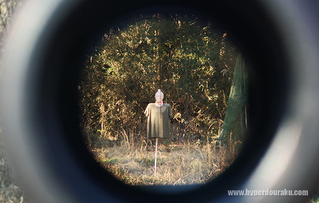 調節リングを完全に閉じた状態では黒いレティクルとなる。周囲の明暗や標的の状況に応じて使い分けが可能だ。