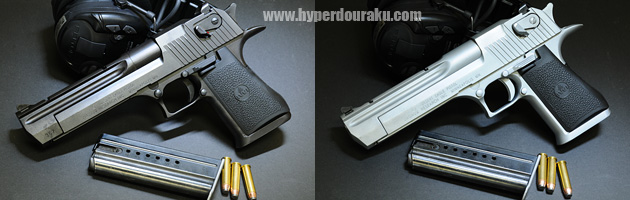ゴールド以外にもブラックやシルバーバージョンのデザートイーグル.357もあった。やはりデカくて重い。