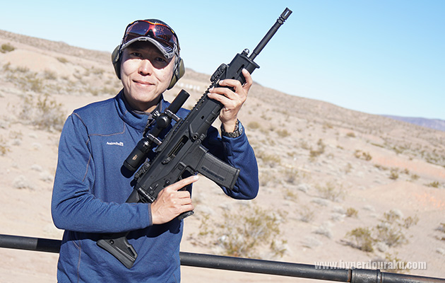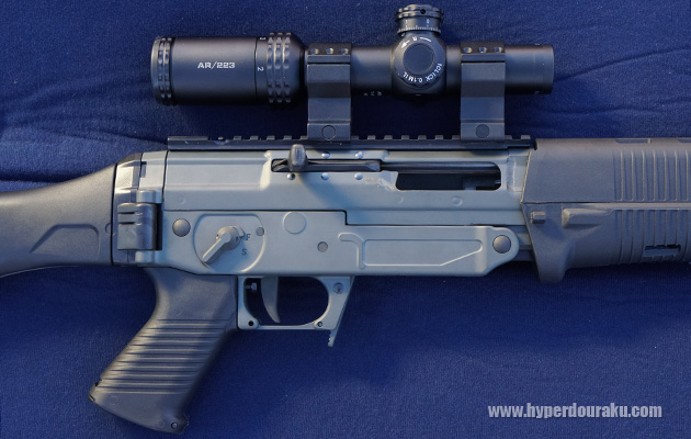 AR-15系とはまた違った感触のマイルドな撃ち心地。スコープはBushnell AR/223 1-4x 24mm。