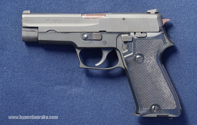 このP220が侮れないほどに撃ちやすい。撮影の合間に様々な距離でプレートを撃ったり、移動しながら撃ってみたが、そのグリップの細さもあって、ものすごいコントロールしやすかった。自衛隊は良い買い物をしたのではと感じつつも、ホールドオープンしてマガジンチェンジしようと思ったら、あれ? あ、マグリリースはボトムか!! 唯一使いにくい点だ。