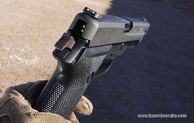 ホワイト3ドットで狙いやすい。トリガーの感触も悪くない。