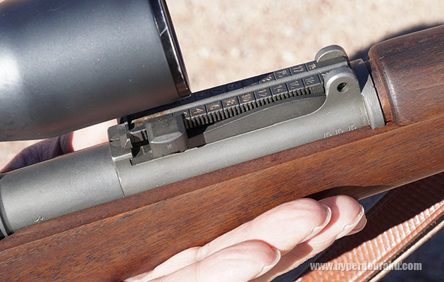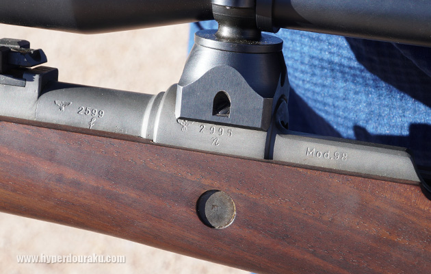 口径は7.92x57mmモーゼル。装弾数は5発。ボルトを引いて押し込んで装填する。