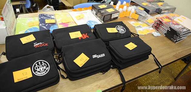 会場にはテーブルがあるので自分の荷物を置いてシューティンググラスをかけ、銃の準備を始める。