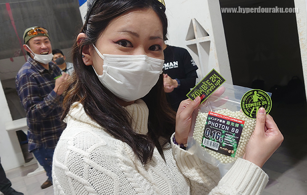 今回から参加者全員にステッカーをプレゼント! また盛り上げてくれたシューターにはハイパー道楽の協賛品としてBB弾もプレゼント!!