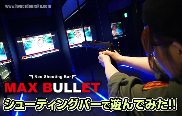 MAX BULLETは店内の内装など、非常に作りが凝っていてクオリティの高いシューティングバー。ゲーム内容はいわゆるゲームセンターにあるようなアミューズメント性の高い内容で、音響演出や、得点システムなどもこだわって作られている。これを実際にトレーサー弾を使用したエアソフトガンで楽しめるのはこれまでになかった感覚。
