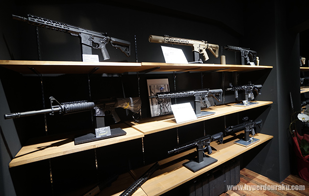 この展示品は試作品ということもあり、チャージングハンドルのレバー形状や、ボルトキャッチの軸穴などが微妙に製品版と異なる。