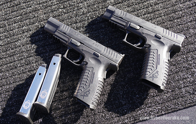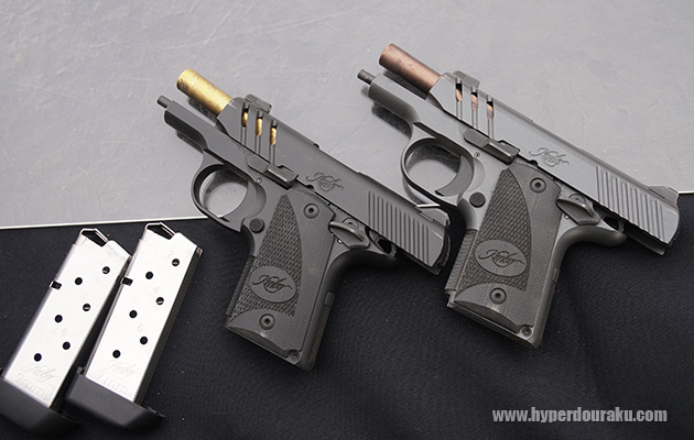 KimberではMicro 9 ESVを撃った。ブラックフレーム+ゴールドバレルと、グレーフレーム+ブロンズカラーのバレルの組み合わせが素敵。