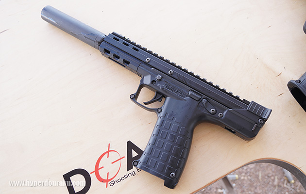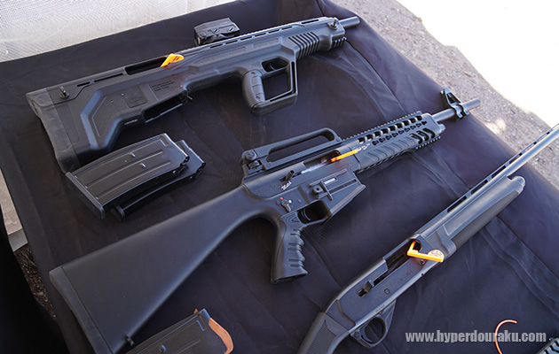 Kel-TecのブルパップショットガンKS7。KSGのシングルチューブマガジンバージョンと言ったところで、6+1発の12Gショットシェルを装填し、ポンプアクションで撃つ。フロントが軽くなったせいかマズルジャンプも激しく感じた。