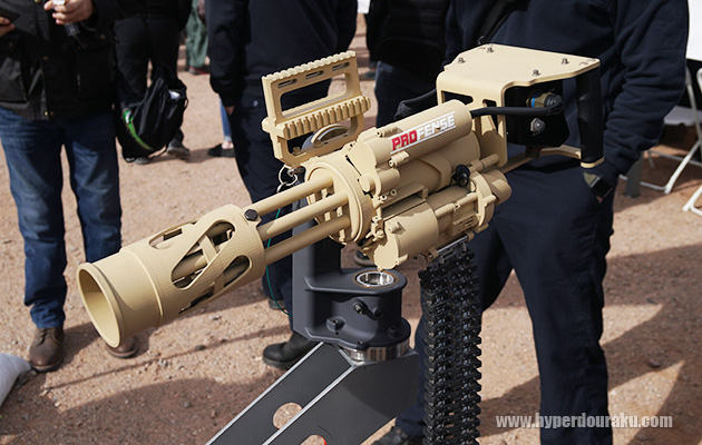 PROFENSEではなんとミニガン各種を展示。こちらは5.56mm x 45弾仕様のマイクロガン。