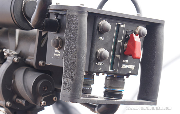 1500rpmから3000、4500rpmのメモリが付いたコントロールパネル。この日は1500と3000回転でのデモが行われた。100m先のバックストップにトレーサー弾が着弾しものすごい砂煙を巻上げていた。近くで撮影していたが、イヤマフをしていても鼓膜が破れそうなほどの重低音。詳しくは動画で。