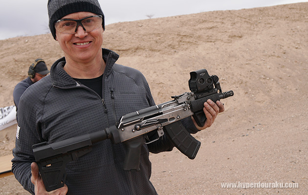 United DefenseのAK-103 X3。ショートバレルのAKで、撃つ度にマズルフラッシュが目の前で炸裂。