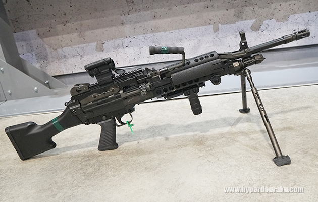 MK48 MOD1。口径7.62mmx51。レイルハンドガードではなく、最新仕様では従来のヒートシンクに戻っている。