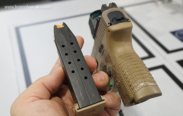 口径は9mmで装弾数は10/12/15発がある。写真のマガジンは12発仕様。