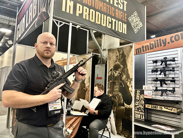 .22ロングライフル弾をセミオートで撃てるれっきとした実銃! サイズは軍用M4の約1/2でベーシックモデルの本体重量はナント2ポンド(=約920g)を切るというGOAT-15。「あー!これGUAMのレンジにマイガンで欲しいなぁ!」と思ってしまった。