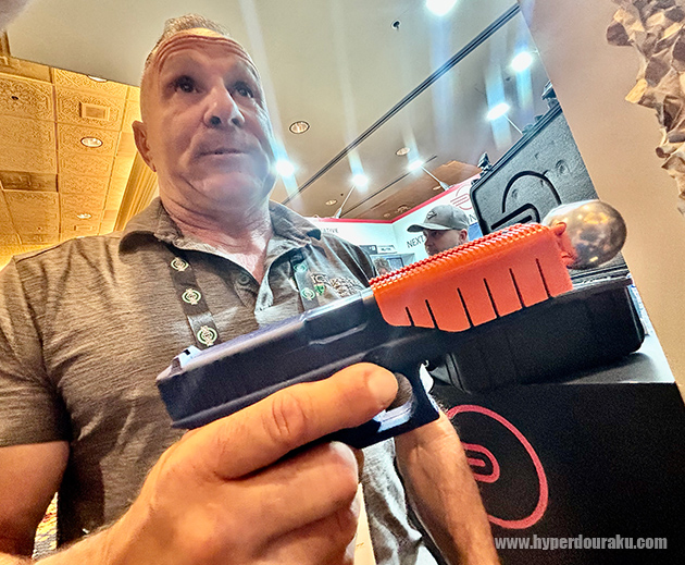 今回のSHOTSHOWでも本当に数多くの「グロック派生型ストライカー拳銃」がデビューもしくは再展示されていたが、その中でも最もトリガーフィーリングが良く「撃ち易いのでは?」と予感させたのが、Daniel Defenseの「DANIEL H9」。以前のSHOTSHOWで「HUDSON H9」として登場した9mm口径のストライカーピストルをベースに、さらに改良を加えたモデルのようだ。ダブルカァラムマガジンなのにグリップが薄く細いのも気に入った。