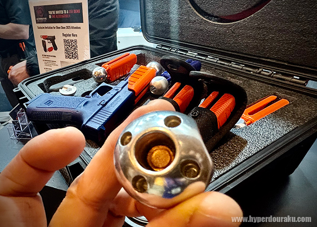 2025年1月7日にエイムポイントとグロックが共同で発表し、今回のSHOTSHOWでは目玉の一つだった新製品。ACROシリーズと似ているがよりコンパクトで広い視野が確保され、アダプタープレートを介さずにより深くスライドに直付けするためグロック純正アイアンサイトとのコウイットネスも可能となっている。対応モデルはG43X、G48、G19 Gen5、G45、G47の5機種(いずれも9mm)で、「1年間は銃本体+ダットサイトのセット販売のみ」との事。