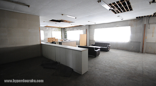 Aフィールドは50m級の倉庫が並んでいるので幅も広い。ここはAフィールド北側倉庫の食堂エリア。