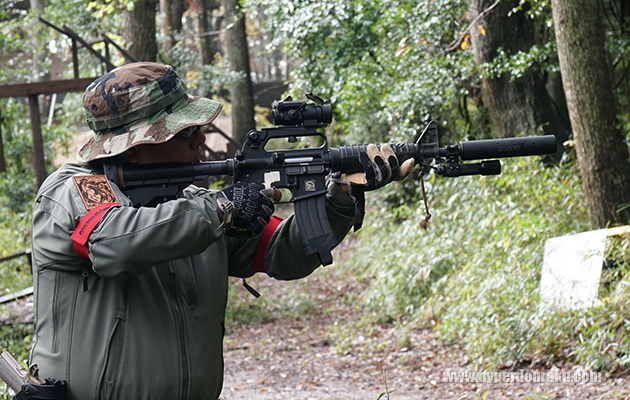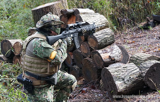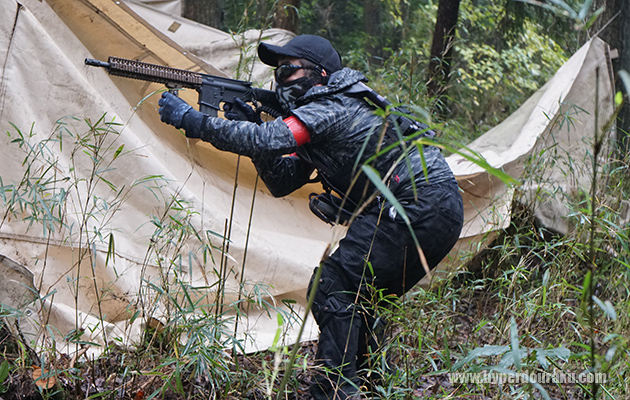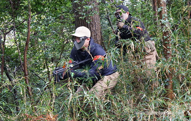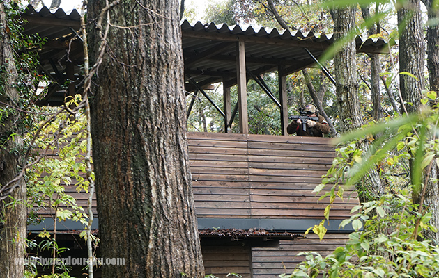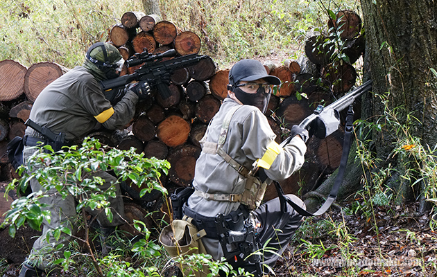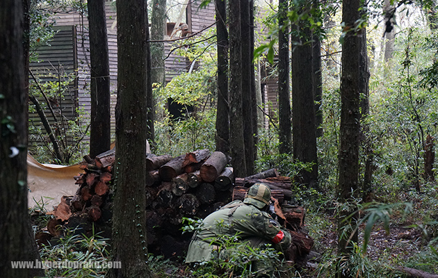 森林フィールドは小雨程度なら木々がある程度雨を防いでくれるので普通にサバゲーできる。
