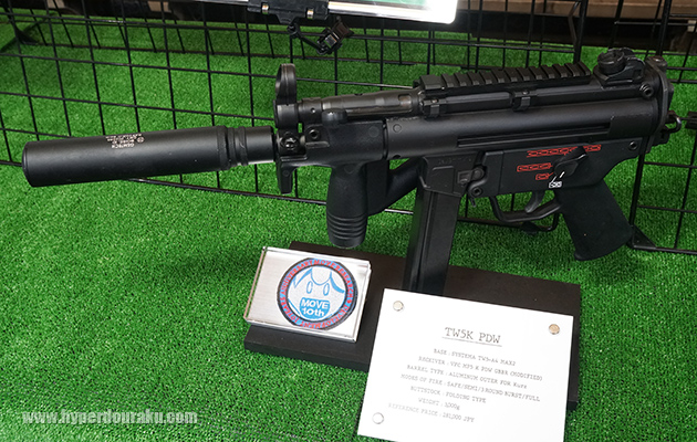 そしてなんといっても凄いのがこちらのPTW89をベースとしたMOVEカスタム。ハンドガードやバイポッドを装着し、刻印もリアルバージョン。レシーバーカラーも実銃に限りなく近いものになっている。純正のレイルハンドガードが付いたのもカッコ良いけど、この現用スタイルにグッとくるのは私だけだろうか?