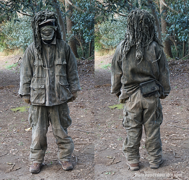 このように頭部のみを擬装するドレッドヘアータイプだけでもずいぶんと迷彩効果が上がる。