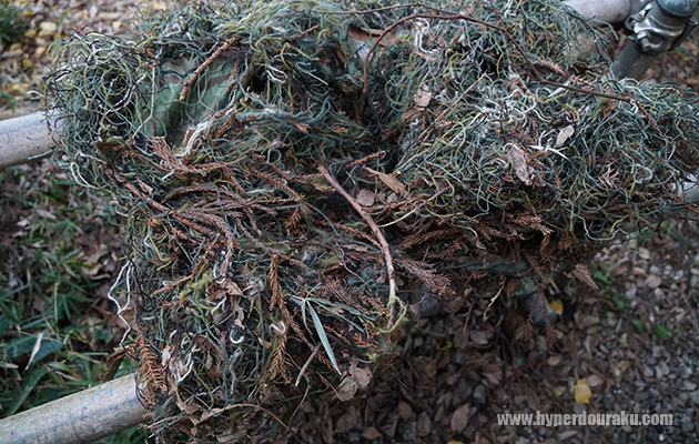 現在では化繊の迷彩ネットが2~3000円でネット販売されているのでこれをギリーフードとして利用しても良い。