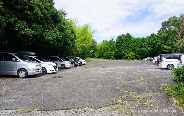 しばらく坂を登って行くと見えてくるのが無料駐車場だ。