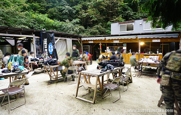 他設備はポットや電子レンジ、自動販売機もあり、物販にはカップ麺や電池、ガスやBB弾も取り扱っている。