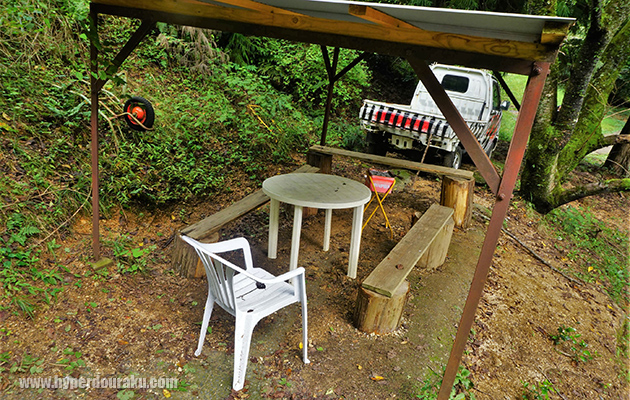 セーフティエリアから通り道を挟んで喫煙スペースがある。