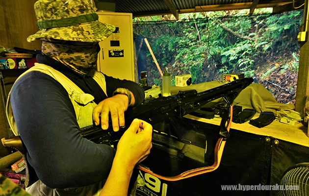 喫煙スペースの横にはシューティングレンジがあり、6人ほどが並んで試射が出来そうだ。