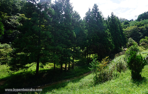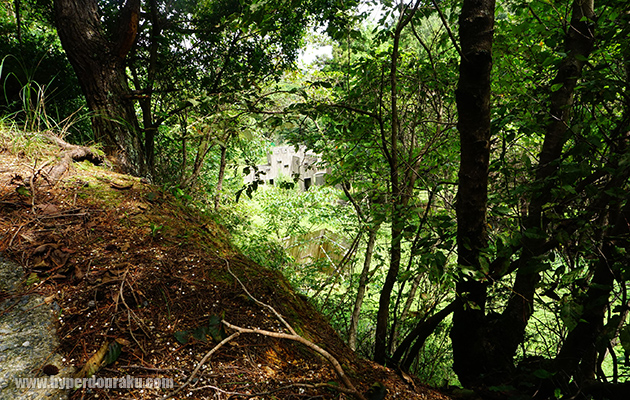 奥スタート位置から左側へ進むと坂道がある。