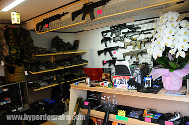 オフィス内はちょっとしたショップになっていて電動ガンからウェア、BB弾やガスなど一通り購入できる。