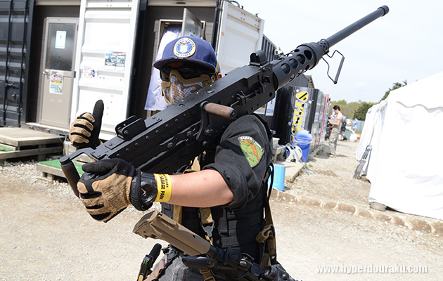 おばたぬき製のM2重機関銃を担いだプレーヤー。残念ながら電動ユニットの組み込みは間に合わなかったそう。次回は是非フィールドでバリバリと撃ってほしい。