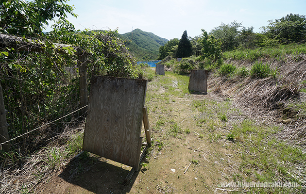 フィールド奥側は斜面となっており、CQBエリアを見下ろすことができる。