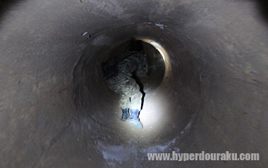 CQBハウスの裏口からはトンネルが続いており、この中も訓練に使用する。