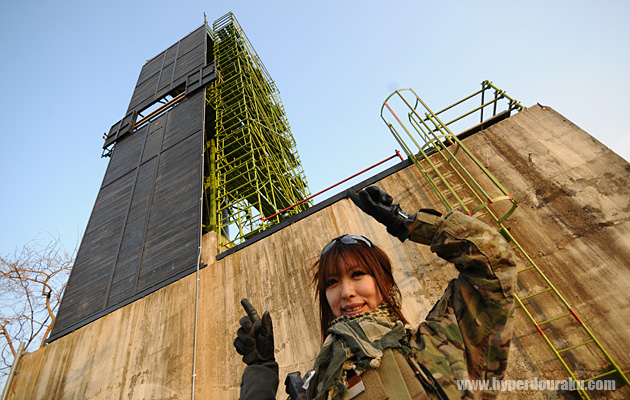 潜入訓練で使用する約20mのラペリングタワー。訓練終了後にさっそく昇ってみた。