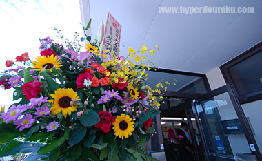 オープンということもあり、入り口には花束などが飾られていた。